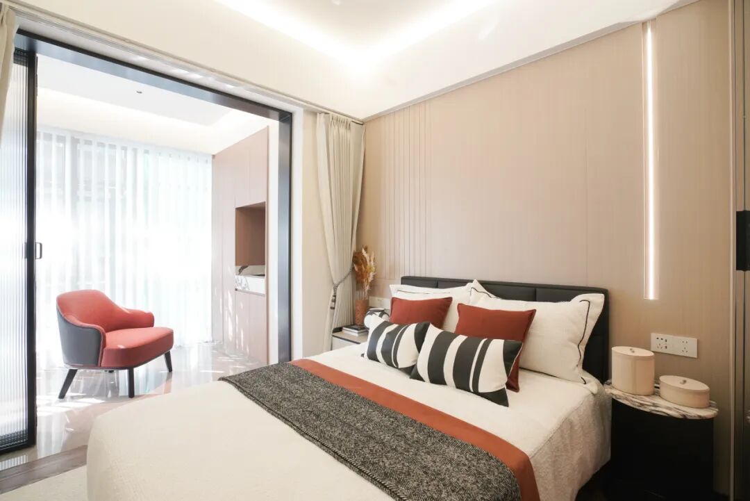 约7.4米宽、2米深的多功能阳台,可现场规划为花房、书房或亲子区;通透四房格局让清风与阳光自在流转,每个房间的明亮度都真实可感,不用对着图纸规划装修,现在就能在实体户型里丈量家具尺寸,让理想家的打造更有底气。