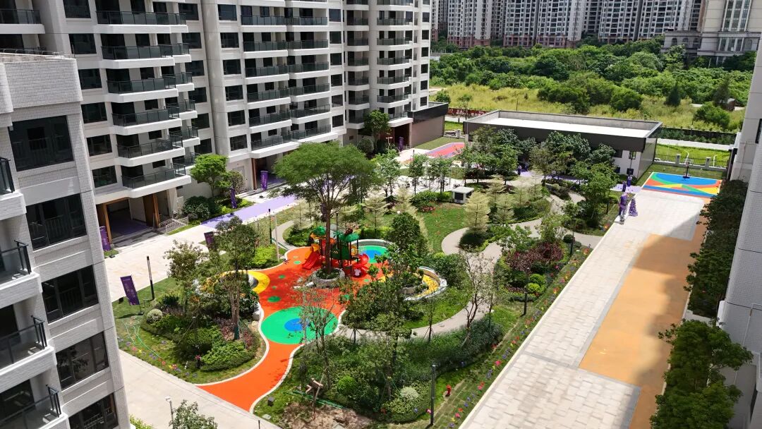 “移步异景”的三进制园林,已从效果图完美蜕变为实景画卷。阳光草坪绿意盎然,长椅与步道铺设就绪,是长辈闲谈散步的惬意天地;绿野森境草木繁盛,林间小径曲径通幽,是放松身心的静谧角落;童梦乐园设施齐全,滑梯等童趣配置静候孩子们的欢声笑语。无需等待,即刻便可享受这份层层递进的归家礼序,让每一次出行与归来,都满是惬意与诗意。