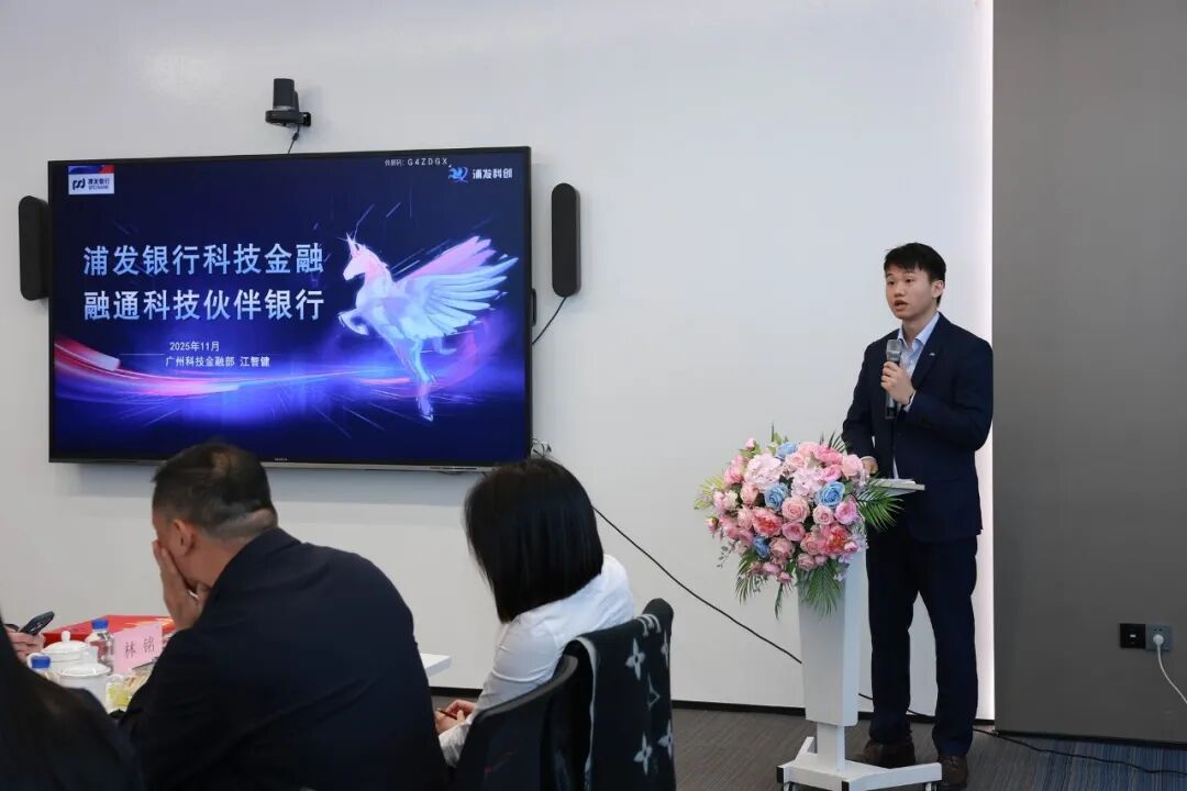 针对AI 与机器人企业研发周期长、轻资产的特性,本次活动特邀浦发银行广州天誉支行带来定制化金融支持方案。该行深耕科创金融服务,凭借丰富的硬科技企业服务经验,已助力多家同类企业突破融资困境,此次分享为在场企业提供了切实可行的资金解决方案,为项目落地与发展注入金融活水。